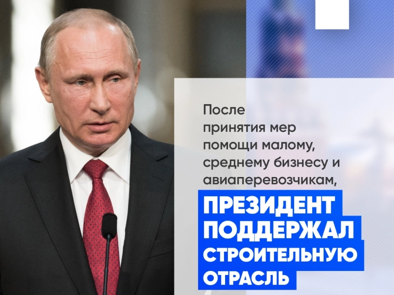 Президент Российской Федерации объявил о мерах поддержки для строительной отрасли