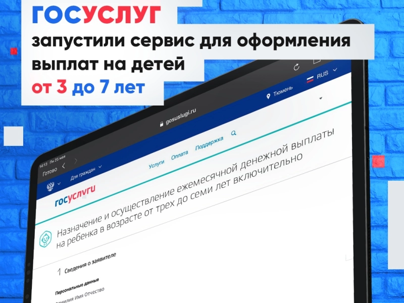 В соответствии с поручением Президента Российской Федерации, на портале Госуслуг продолжает работать сервис для оформления выплат на детей от 3 до 7 лет и детей из малоимущих семей. Подробности ниже