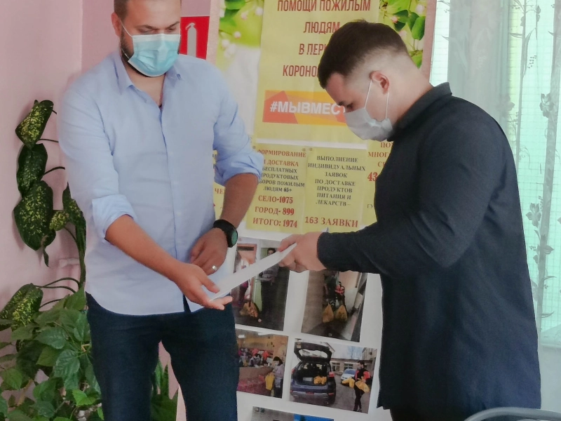 Артём Туров наградил грамотами Государственной Думы особо отличившихся за время пандемии добровольцев: Ярослава Жука, Дашу Ильину, Алексея Шематонова и Даша Данилову.