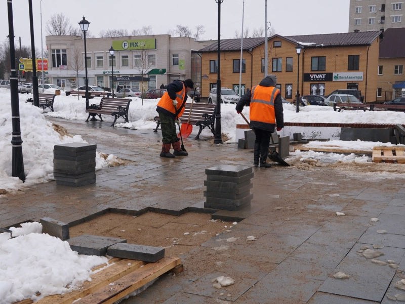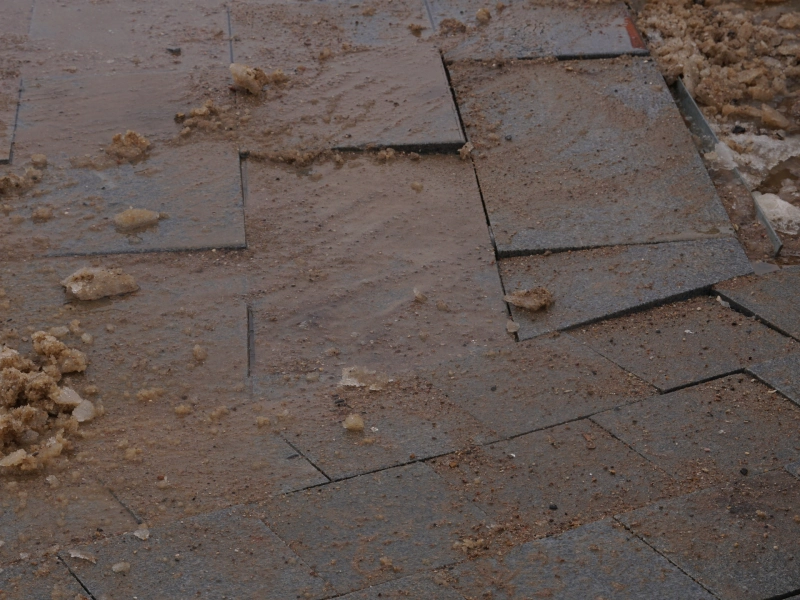 В настоящее время начинается переукладка плитки.