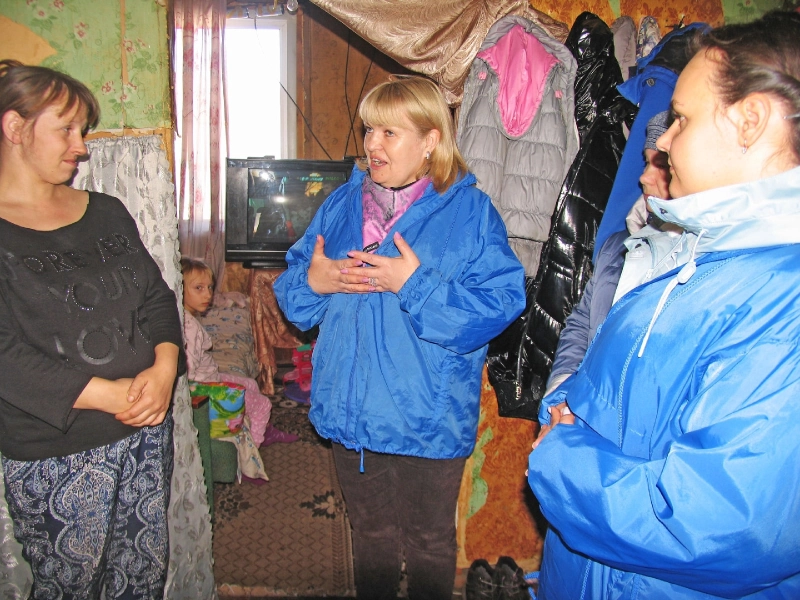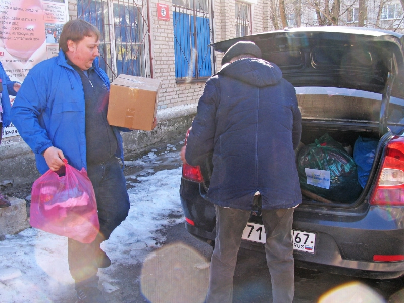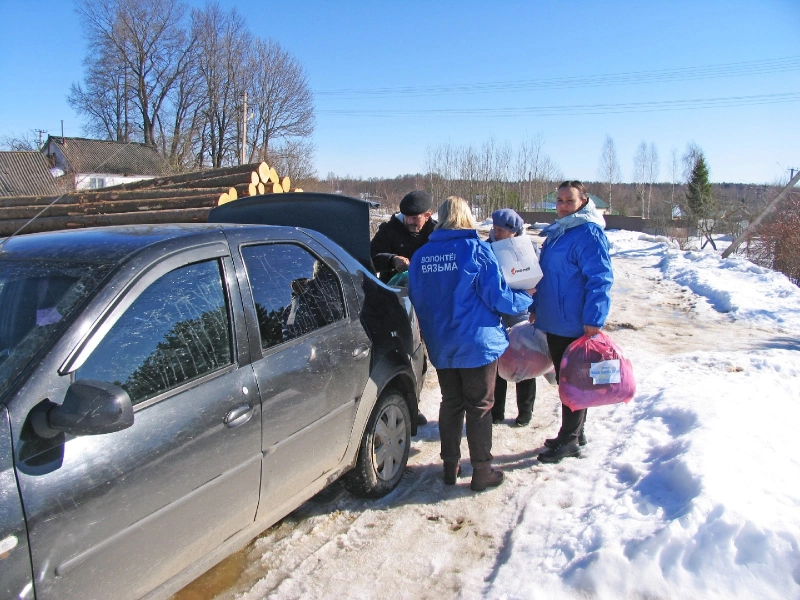 Первая встреча по проекту прошла в Андрейковском сельском поселении в с. Хмелита в многодетной семье Синявских: поздравили с праздников 8 марта (в семье мама, бабушка и 5 девочек), а затем передали благотворительную помощь – продукты питания, канцтовары, предметы домашнего обихода и одежду.