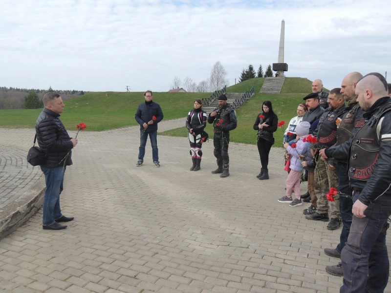 7 мая военно-исторический мемориал «Памяти воинов Западного и Резервного фронтов «Богородицкое поле» посетили участники патриотического мотопробега из клуба «Ночные волки».