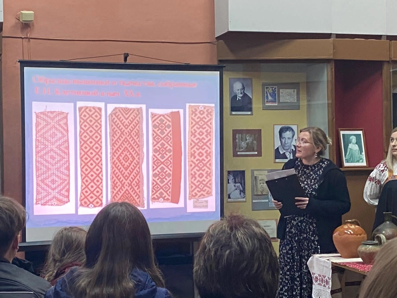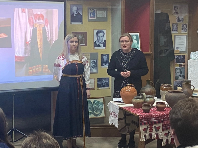 Вечером 21 мая сотрудники историко-краеведческого музея провели увлекательный интерактивный лекторий "Возвращение к истокам", об истории народного костюма и народного гончарства в Вяземском уезде. Потом гости музея смогли познакомиться с выставками музея, а также узнать интересные факты, касающиеся представленных экспозиций.