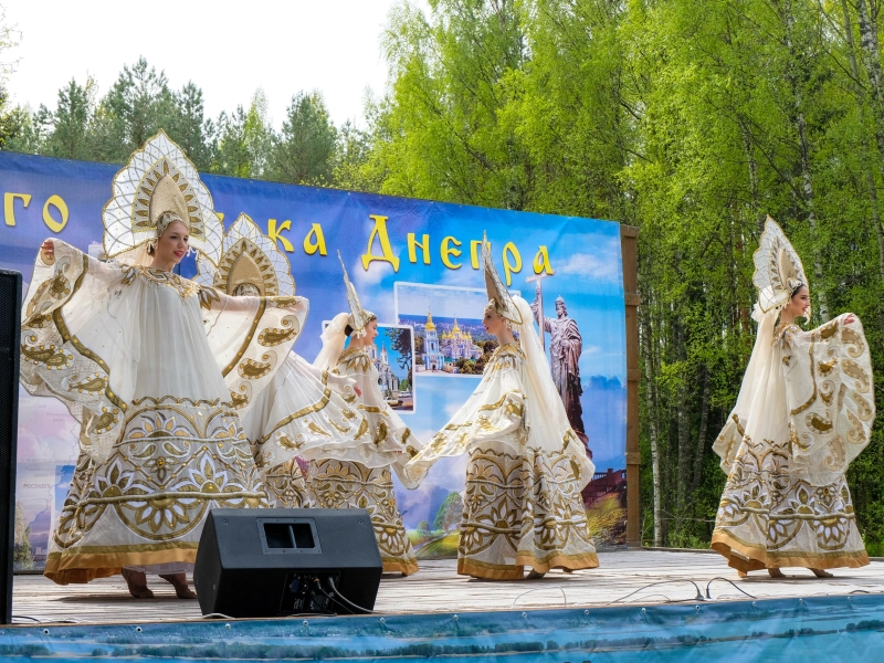 Началось с божественной литургии, далее состоялся крестный ход с освящением вод истока Днепра, затем праздничная программа "У истока Днепра" танцевальных коллективов и солистов вокальных ансамблей учреждений культуры Смоленской области.