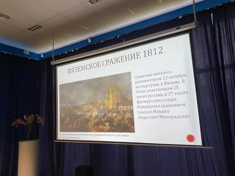 22 октября (3 ноября) 1812 г., во время Отечественной войны 1812 г., состоялось сражение русской и французской армий под Вязьмой. После сражения под Малоярославцем главные силы русской армии под командованием М. И. Кутузова совершили так называемый фланговый марш, двигаясь параллельно Старой Смоленской дороге, не давая тем самым вражеским войскам уйти с разоренной местности.