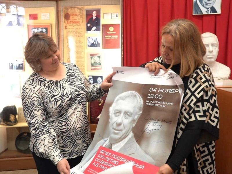 Артисты привезли для нашего музея замечательный подарок – афишу спектакля Театра Сатиры со столетнего юбилея Папанова с автографами актеров. Подарок станет ценным экспонатом коллекции Вяземского историко-краеведческого музея.