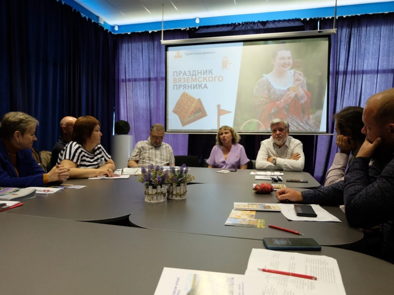 Гости приняли участие в обсуждении вопросов взаимодействия в сфере туризма с вяземскими компаниями и учреждениями: туринфоцентр «Старая Смоленская дорога» ИП Шлакунов А., турагентство «Экспресс-тур» Н.А. Волков, туроператором «Апельсин» А.И. Кошевая, эко-ферма «Мой мир» Э.В. Ревенко, кафе «33 пингвина» А.С. Харитонов. О мерах поддержки предпринимателей в Смоленской области рассказала М. Двинянинова.