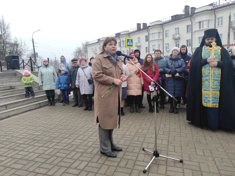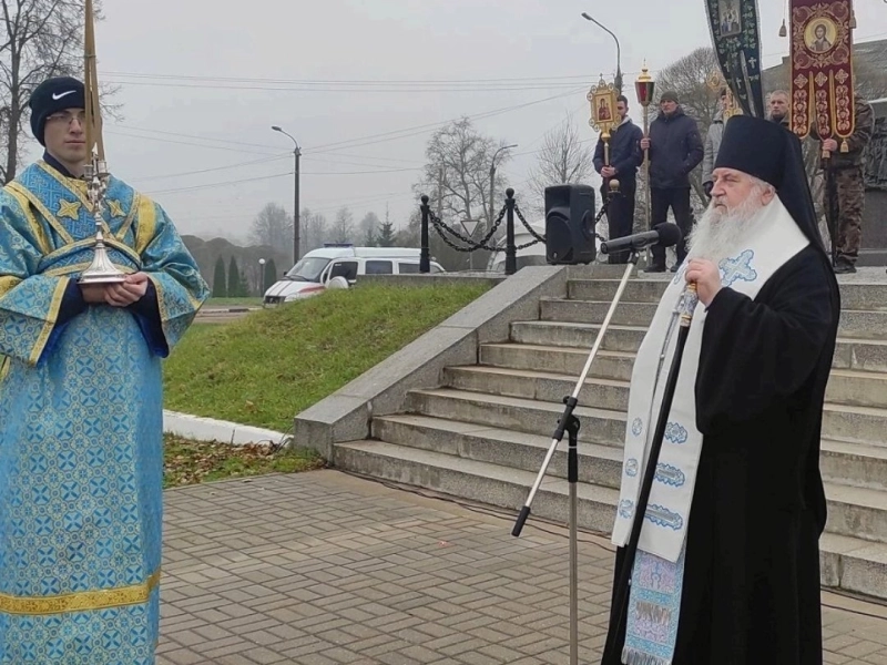 На митинге у стелы вязьмичей поздравили Епископ Вяземский и Гагаринский Владыка Сергей, Глава Вяземского района Инна Демидова.