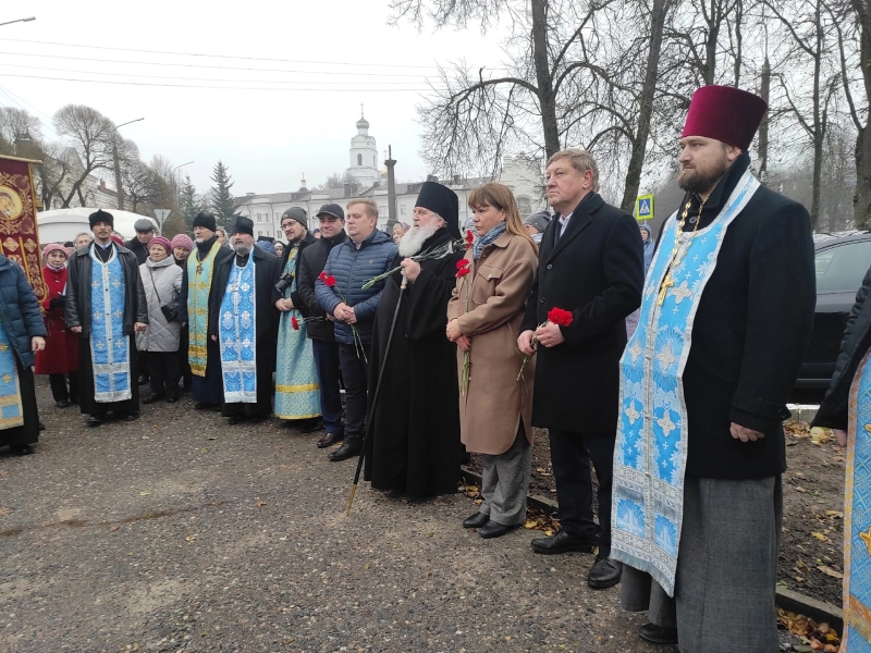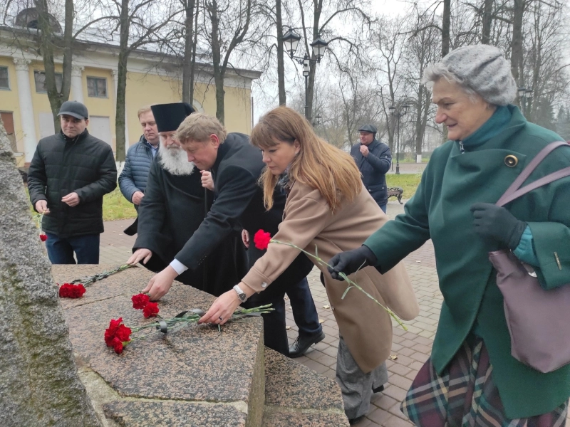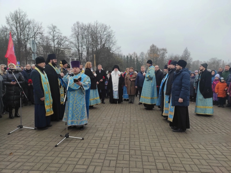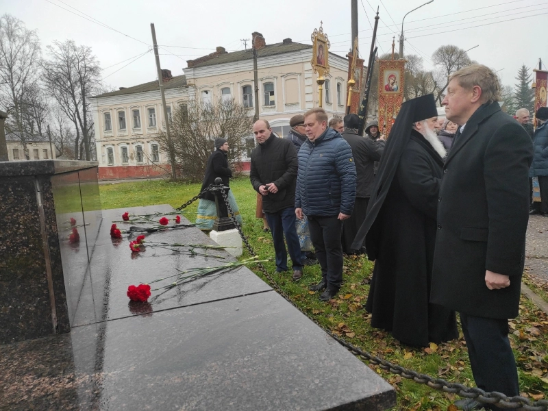 У памятника собрались руководители города и района, священнослужители, представители общественных, молодёжных организаций, православные верующие.