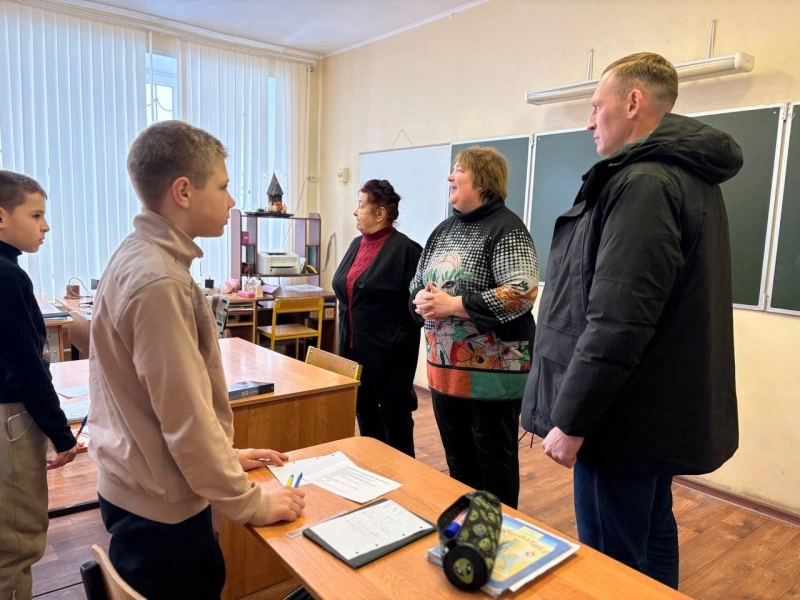 Олег Смоляков ознакомился с материально-технической базой школы, пообщался с директором, учителями и учащимися, обсудил вопросы функционирования учреждения.