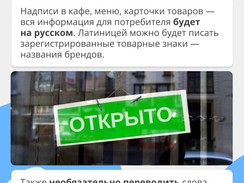 Детям до 12 лет в самолёте гарантируют место рядом с родителем, оформить микрозаём онлайн без биометрии теперь не получится, а вывески обязательно должны быть на русском языке.