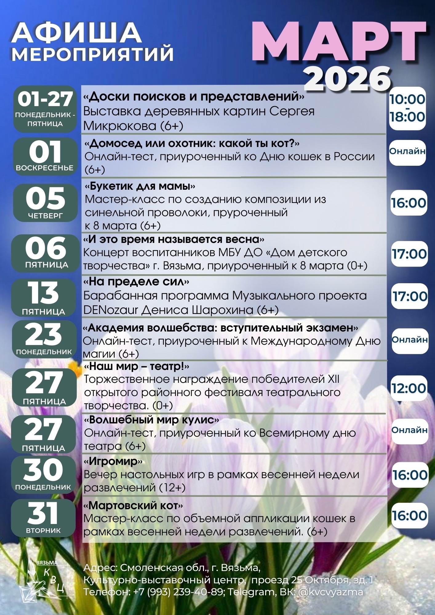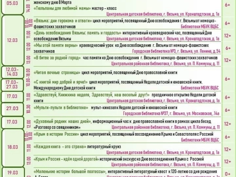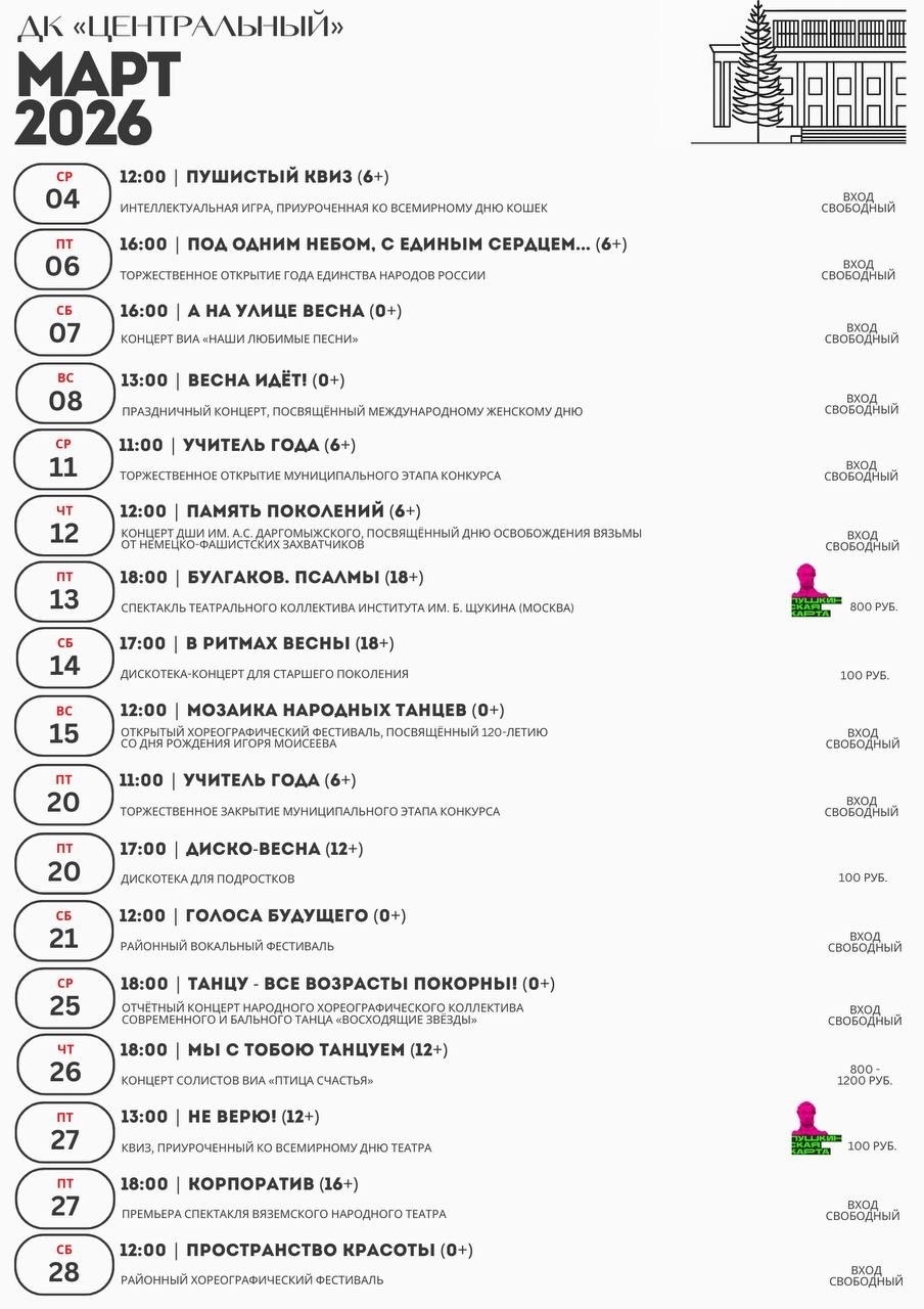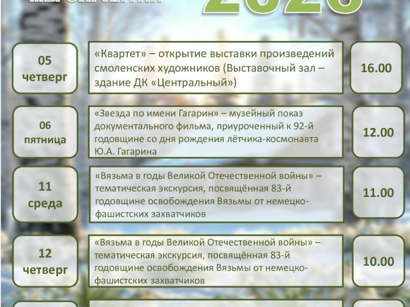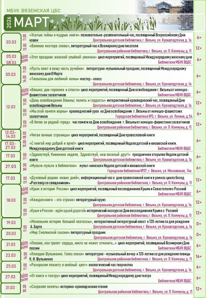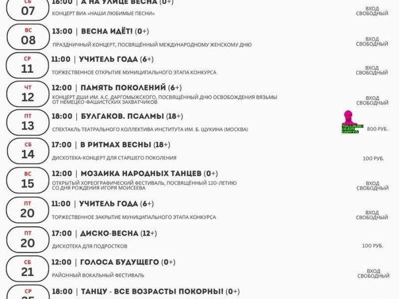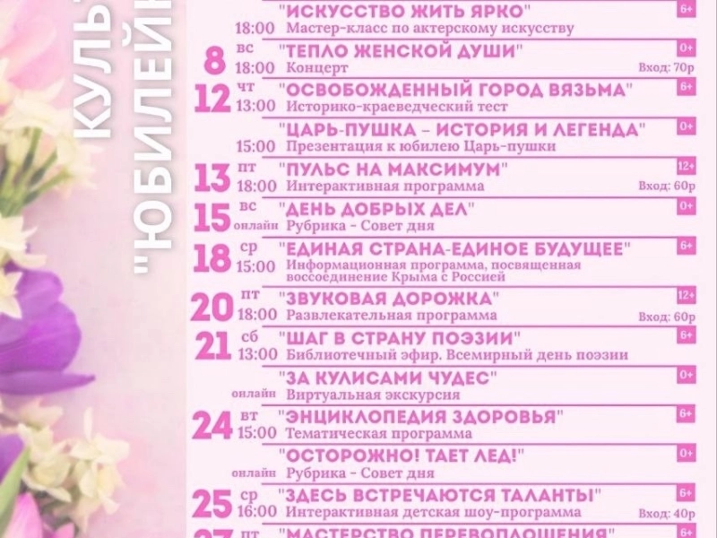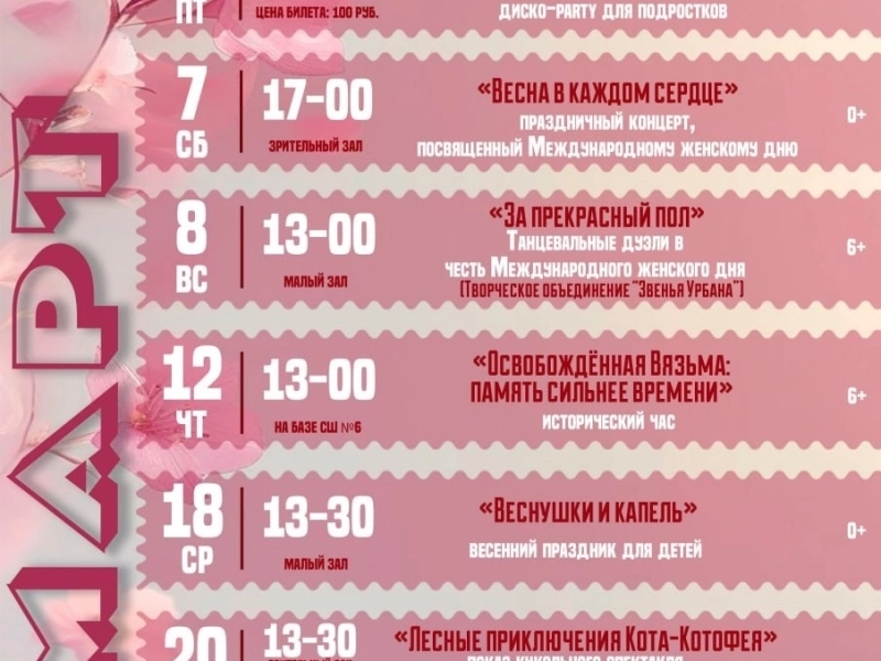 Учреждения культуры нашего города подготовили для вас прекрасную программу в первый весенний месяц.