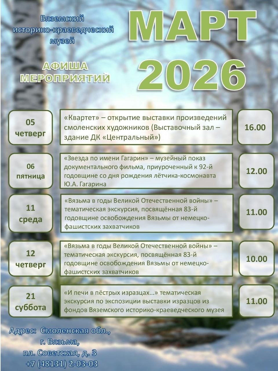 • Культурно-выставочный центр - vk.ru/kvcvyazma