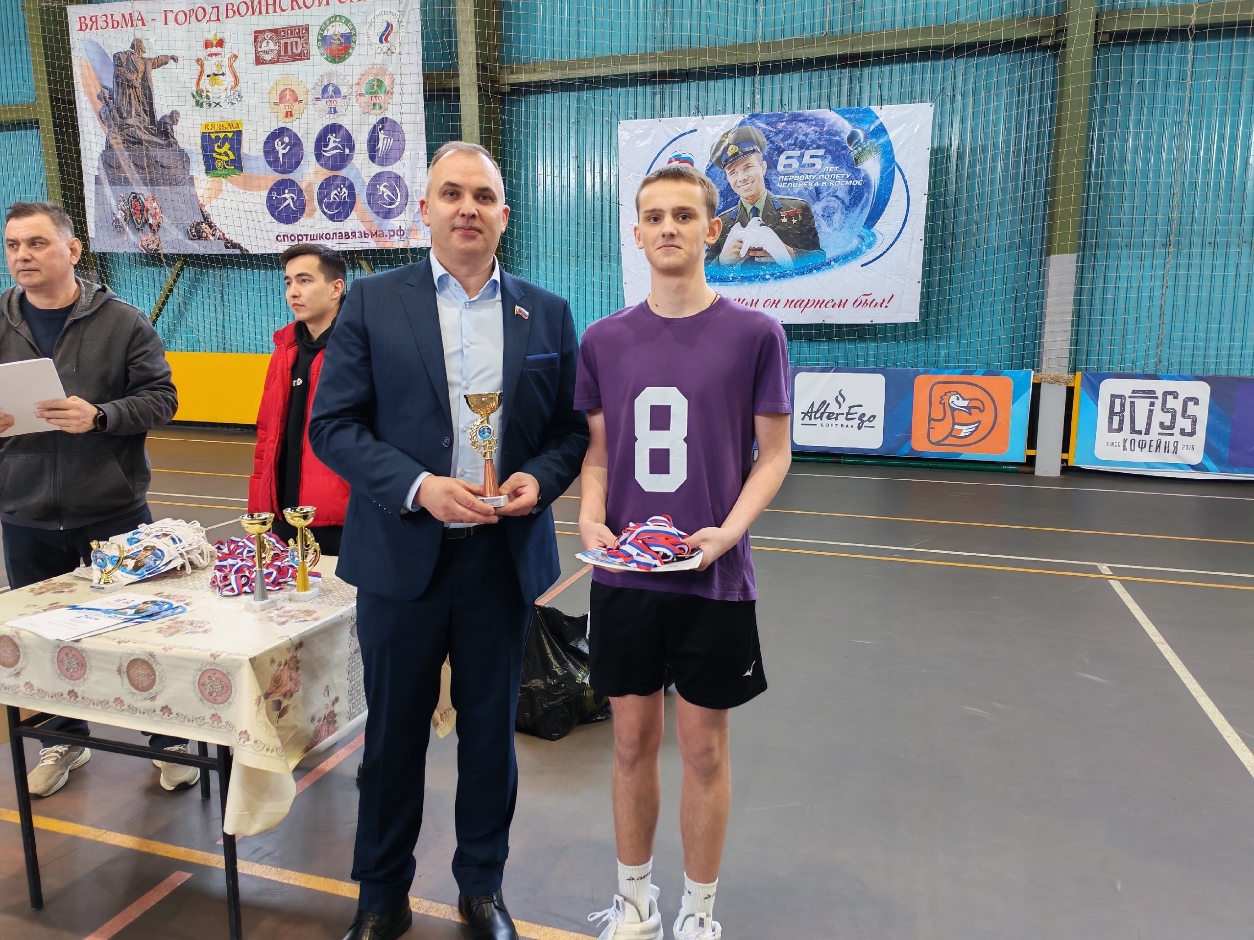 Победители были награждены почетными дипломами, кубками и медалями,которые вручал Депутат Вяземского окружного совета Ренат Чурбанов.