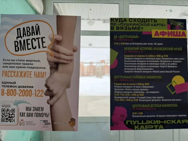 Афиши размещены на входе в городские образовательные учреждения. Их будут обновлять каждый месяц.