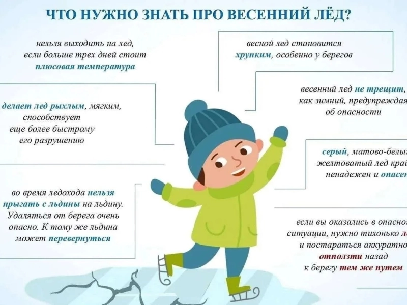 - Не выходите на лед во время весеннего паводка;